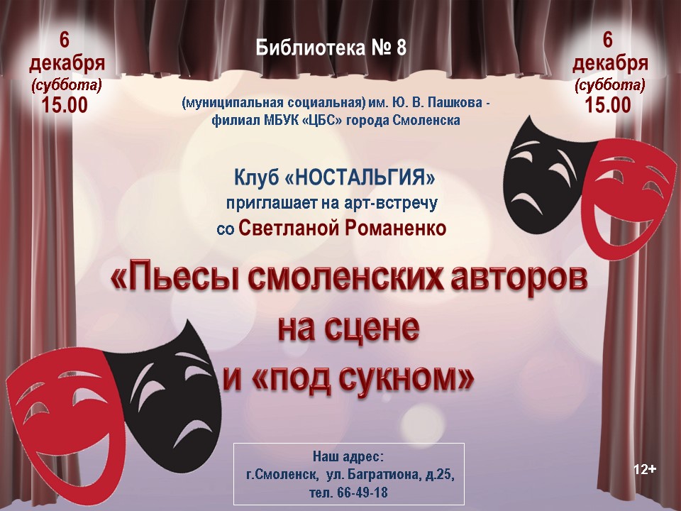 «Пьесы смоленских авторов на сцене и «под сукном»» (12+)