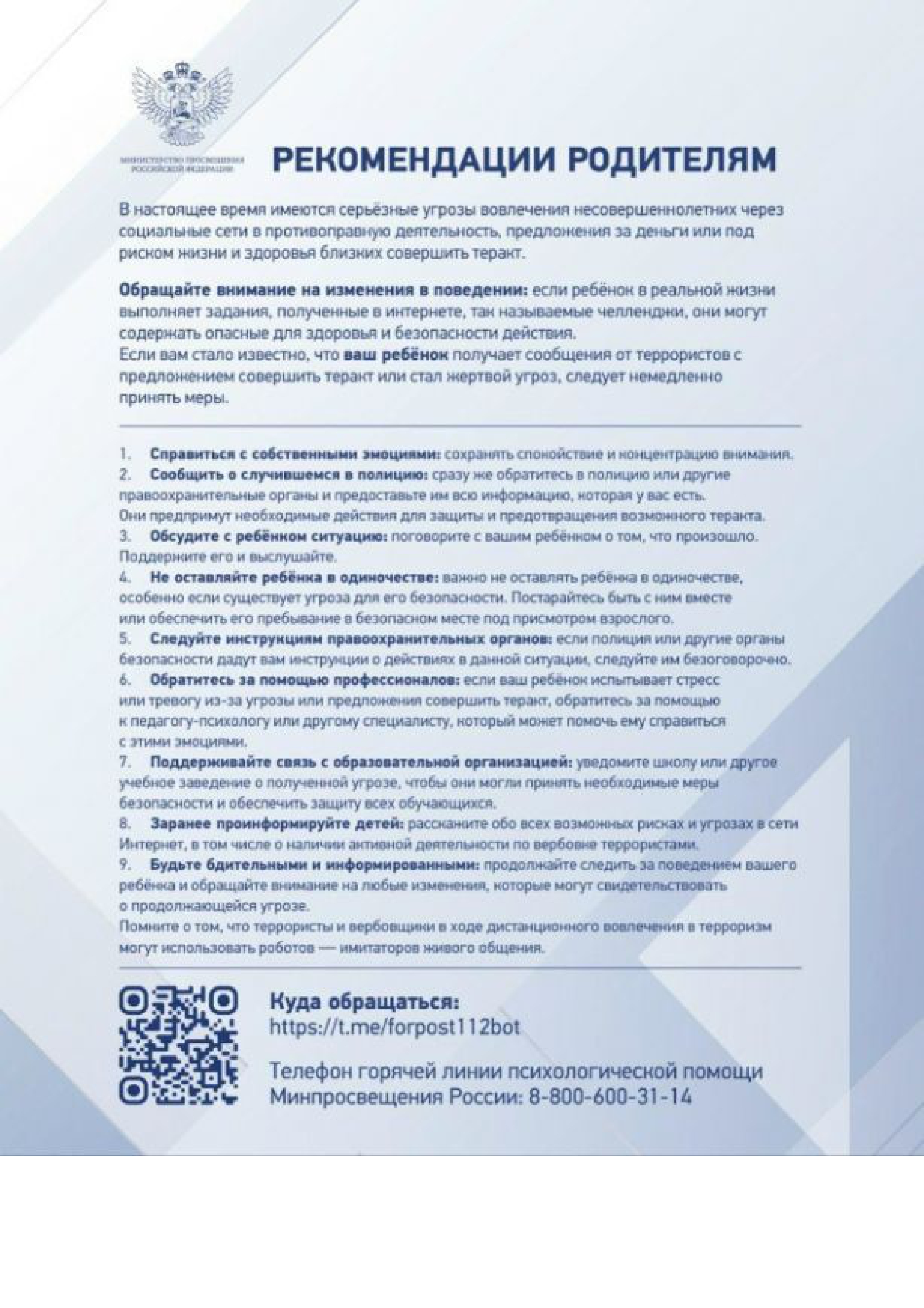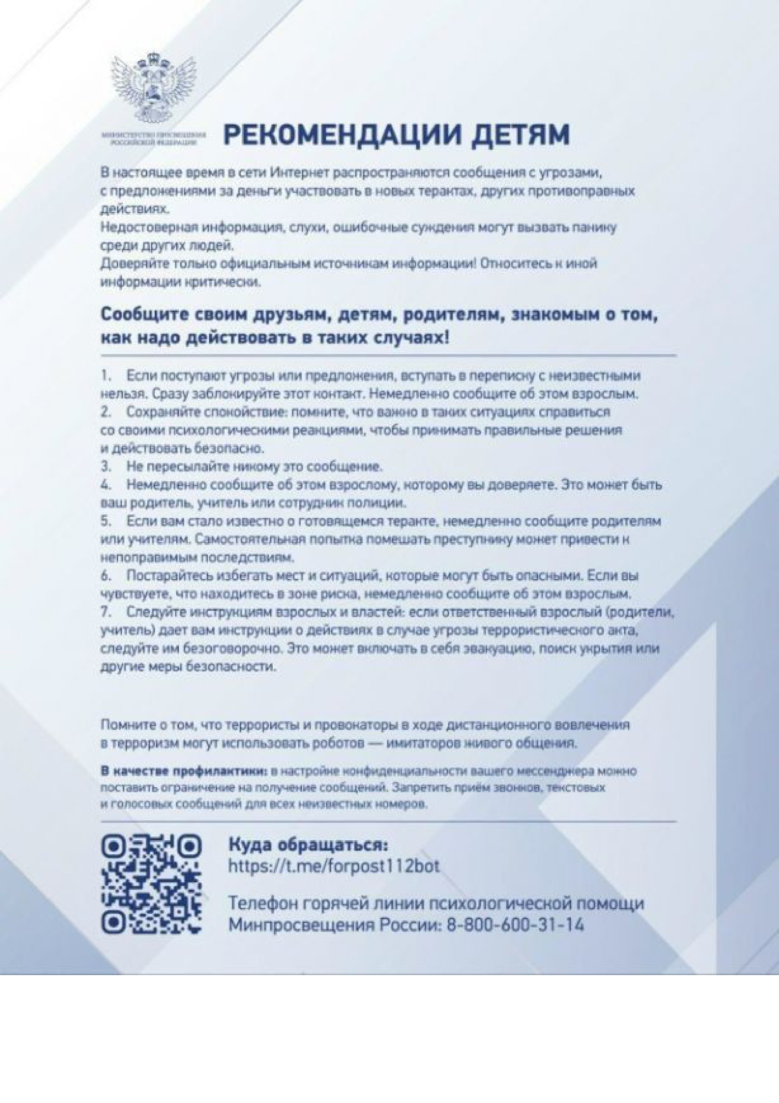Материалы по разъяснению иностранным гражданам норм поведения, традиций, культурных ценностей российского общества, норм законодательства Российской Федерации, предусматривающих ответственность за подготовку или участие в террористической деятельности, действиях при получении информации о возникновении угрозы террористического акта.