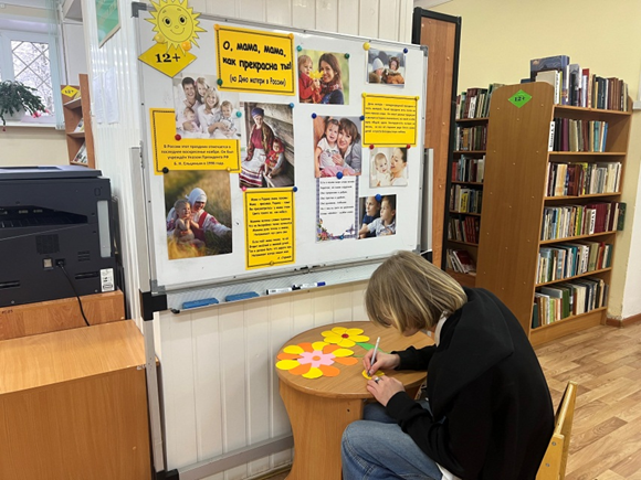 26 ноября на абонементе среднего и старшего школьного возраста центральной детской библиотеки имени А. В. Мишина была проведена акция«Моя мама самая…», приуроченная ко Дню матери.