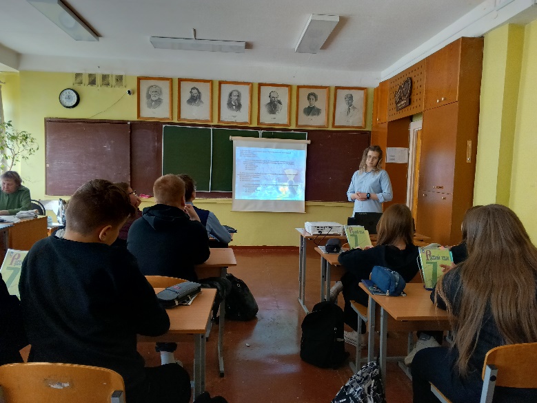 24 апреля библиотека № 4 для обучающихся старших классов МБОУ «СШ № 13 им. Э.Д. Балтина» провела тематический час «Чернобыль: боль и память», посвященный 40-летию аварии на Чернобыльской АЭС.