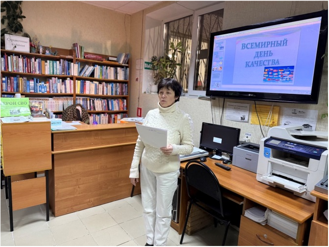 11 ноября библиотека № 13 им. В.А. Вонлярлярского провела информационный час «Что нужно знать о качестве», приуроченный ко Всемирному дню качества.
