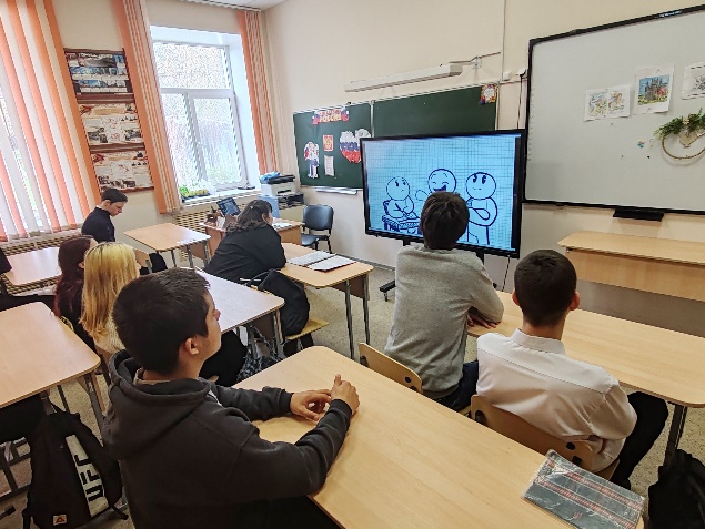 В ходе занятия девятиклассники просмотрели видеоролики, выполнили интерактивное задание «Команды из фильмов», а в завершении пришли к выводу: команда - это группа единомышленников, где каждый вносит свой значимый вклад в общее дело и помогает добиться общего успеха. А вместе лучше решается любая задача, и даже самое трудное дело легче дается вместе с единомышленниками.