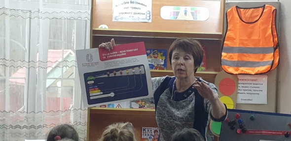 Ребята познакомились с историей светофора, вспомнили правила дорожного движения и с помощью слайд-презентации обсудили все дорожные знаки, находящиеся рядом со школой № 5 и библиотекой – предупреждающие, запрещающие, предписывающие и знаки особых предписаний.