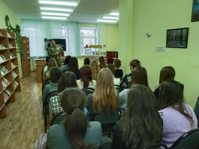17 февраля в центральной детской библиотеке имени А. В. Мишина, в рамках корпоративного проекта «Россия в пространстве и времени» и проекта библиотеки «Я – патриот! Я – гражданин!», состоялась встреча «Герои СВОего времени», приуроченная ко Дню защитника Отечества.