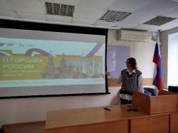 20 октября библиотека № 9 им Р.А. Ипатовой в преддверии Дня народного единства провела актуальный разговор «Города России» со студентами ЧПОУ «Смоленский кооперативный техникум Смолоблпотребсоюза» им. Героя Советского Союза М.А. Егорова.