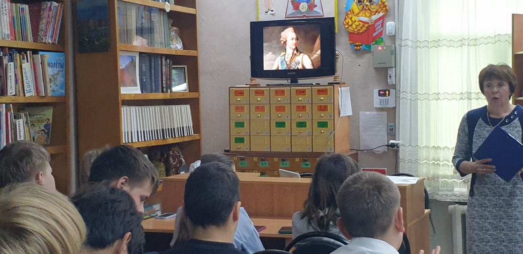 16 октября в библиотеке № 5 в рамках реализации корпоративного проекта «Земля Смоленская моя» состоялся информационный час «Григорий Александрович Потёмкин — и его роль в истории России» для обучающихся 7 класса МБОУ «СШ № 5».