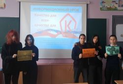 24 октября библиотека № 11 им. В.Е. Рудницкого провела для обучающихся 7-х классов МБОУ «СШ № 1» информационный урок «Качество для всех - качество для каждого», посвященный Дню качества.