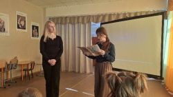Библиотекарь рассказал историю праздника, представил документальные кадры первых книжных именин, начало которых было положено в суровом военном 1943 году. Ведущий рассказал, что инициатором праздника книги был замечательный детский писатель Лев Абрамович Кассиль.