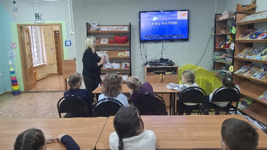 В завершение программы мальчики и девочки посмотрели музыкальный клип группы «Индиго» «Мама, будь всегда со мною рядом», а также мультфильм «Мама для мамонтёнка», оставивший добрые впечатления.
