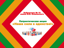 3 ноября в библиотеке № 10 имени М.В. Исаковского была проведена патриотическая акция «Наша сила в единстве!».