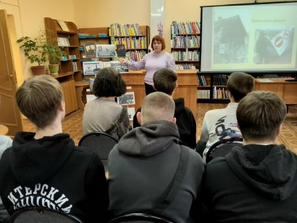 Вниманию молодых людей также была представлена книжная выставка, содержащая документальные материалы и художественные произведения о трагедии.