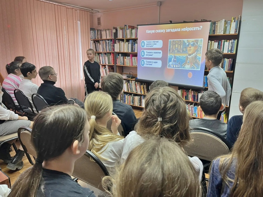 Чтобы превратить Царевну-Лягушку в Василису Премудрую, ребятам предстояло выполнить ряд интеллектуальных заданий. Дети с энтузиазмом отгадывали загадки от нейросети, которая подготовила для них настоящие цифровые головоломки, участвовали в мультимедийной викторине «Сказочный переполох», складывали рассыпанные поэтические строчки в интерактивной игре «Потерянные стихи» и помогали сказочным героям вспомнить сюжеты любимых книг.