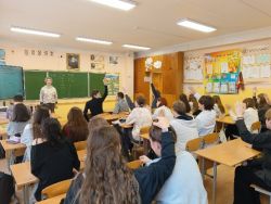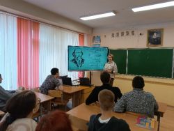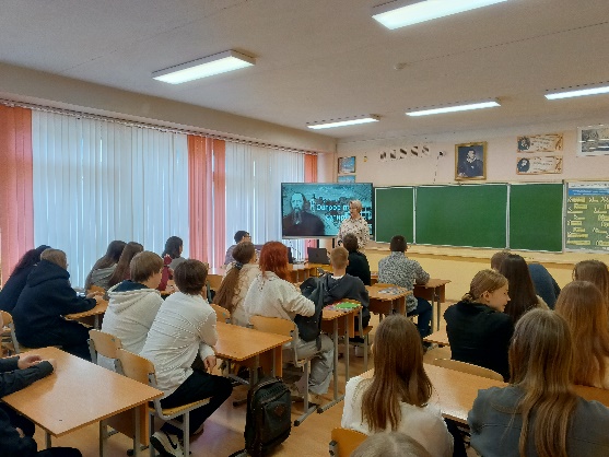 Ведущий рассказал старшеклассникам о жизненном и творческом пути писателя.