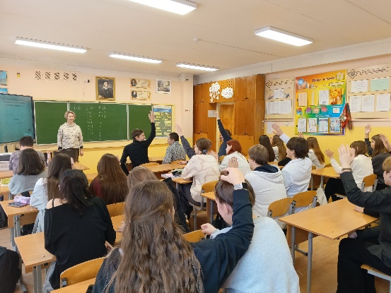 Затем школьники, разделившись на команды, отвечали на вопросы викторины, вспоминая произведения Салтыкова-Щедрина и основные даты и события его жизни.