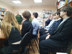 24 октября в библиотеке № 1 имени А.М. Бодренкова состоялся профориентационный час «Профессия военный» для обучающихся 10 класса МБОУ «СШ № 38».