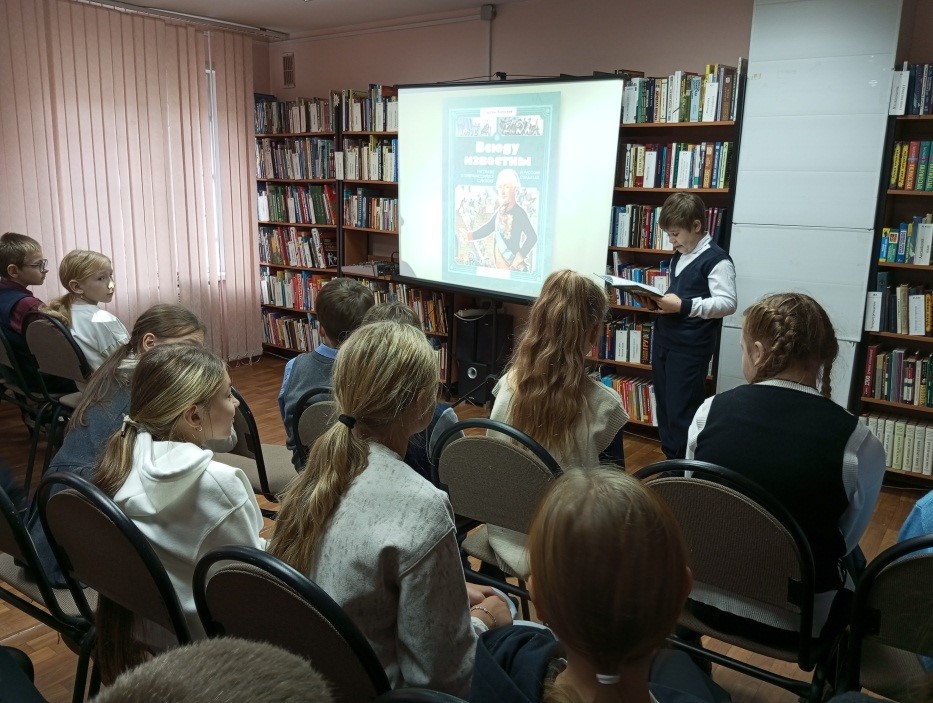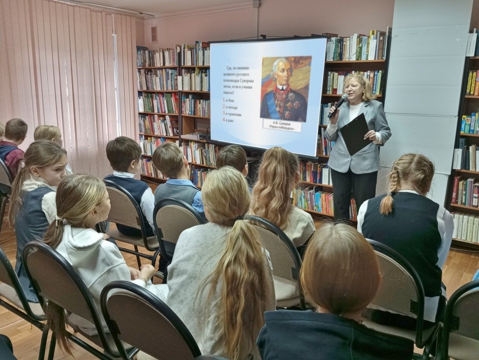13 ноября в детской библиотеке № 2 в рамках проекта по гражданско-патриотическому просвещению «Памяти героев верны» провели час подвига «Учись у героев Отчизну беречь», посвященный 295-летию со дня рождения А.В. Суворова.