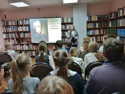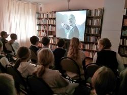 Вниманию ребят была представлена видеопрезентация «Наука побеждать», которая познакомила с основными этапами жизненного пути легендарного полководца и раскрыла ключевые моменты его победоносных походов и сражений.