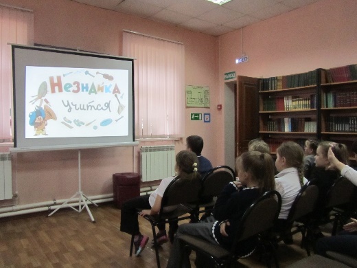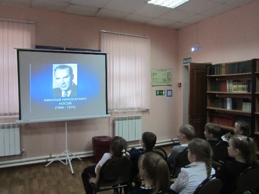 Школьники путешествовали по страницам книг писателя – «Живая шляпа», «Фантазёры», «Мишкина каша», «Телефон», «Автомобиль», «Витя Малеев в школе и дома». Просмотрев мультфильм «Незнайка учится», окунулись в сказочную атмосферу жителей Цветочного города, вспомнили и спели любимую песню малышей-коротышей «В траве сидел кузнечик».