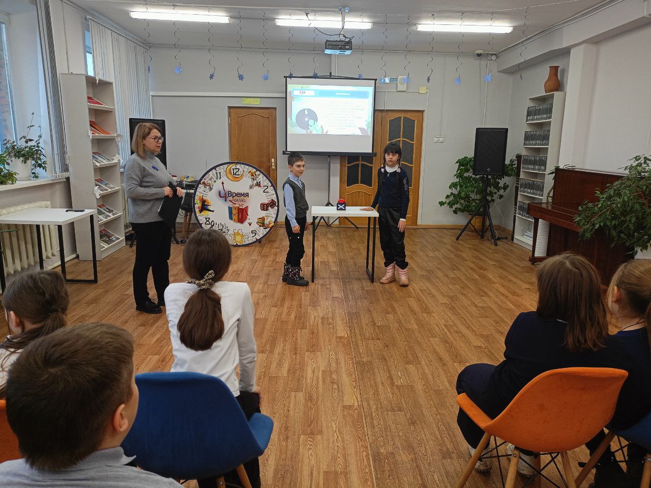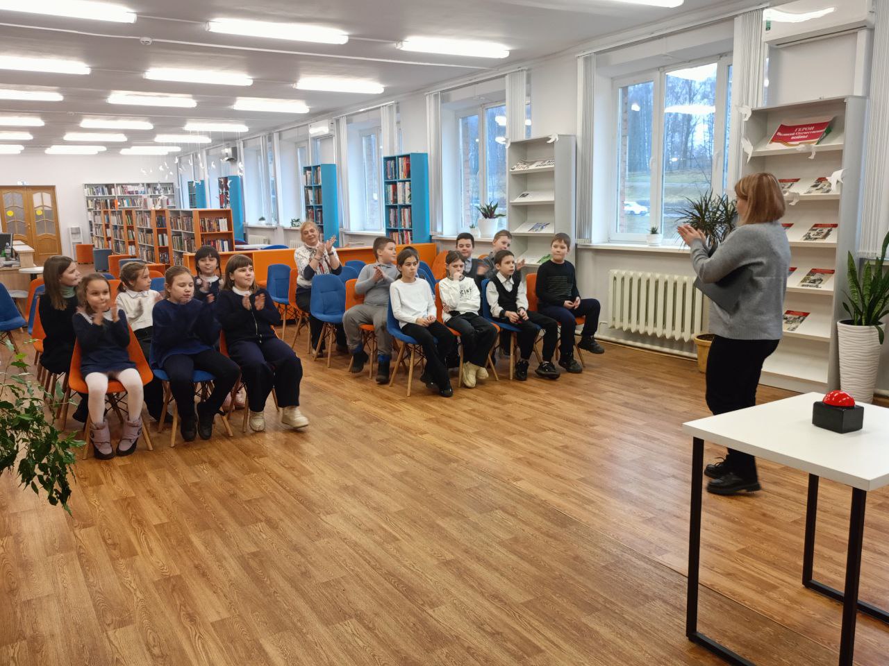 8 декабря обучающиеся 3 класса МБОУ «СШ № 29 с углубленным изучением отдельных предметов» побывали в обновлённой Первой модельной библиотеке Смоленска, где для них состоялась музыкальная игра «Вместе весело шагать», посвящённая 100-летию со дня рождения Владимира Шаинского.