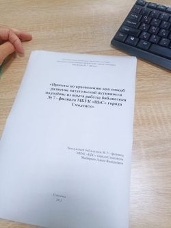 Муниципальное бюджетное учреждение культуры «Централизованная библиотечная система» города Смоленска представила заведующая библиотекой № 7 Алена Майорова. Она рассказала о реализованных проектах филиала: исследовательско-творческом проекте «Он был чистого слога слуга…», посвящённом поэту В. Тазову, краеведческом проекте «Вот выплывает даль картины», который открыл двери школьникам в мир творчества талантливых художников Смоленского региона.