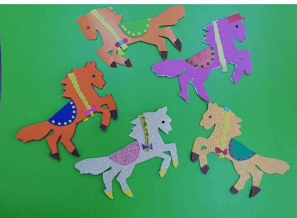 В мастерской ребята под звуки праздничных мелодий создавали уникальный новогодний символ – «Огненную лошадь» из пластичной замши (фоамирана).