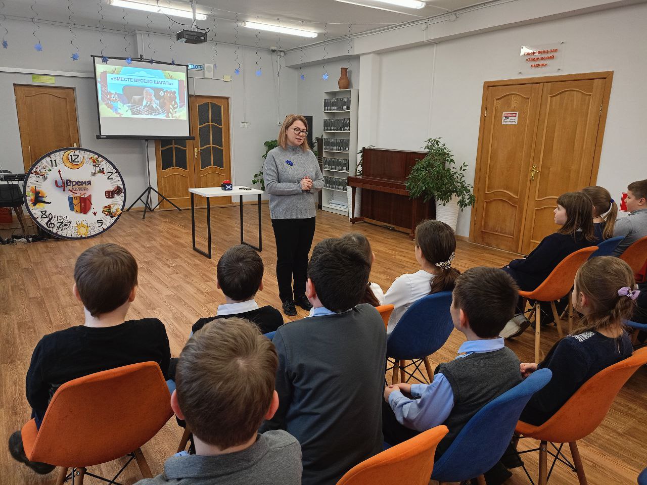 8 декабря обучающиеся 3 класса МБОУ «СШ № 29 с углубленным изучением отдельных предметов» побывали в обновлённой Первой модельной библиотеке Смоленска, где для них состоялась музыкальная игра «Вместе весело шагать», посвящённая 100-летию со дня рождения Владимира Шаинского.