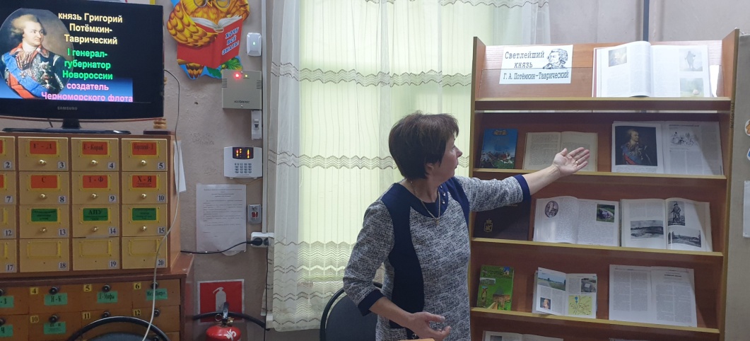 16 октября в библиотеке № 5 в рамках реализации корпоративного проекта «Земля Смоленская моя» состоялся информационный час «Григорий Александрович Потёмкин — и его роль в истории России» для обучающихся 7 класса МБОУ «СШ № 5».